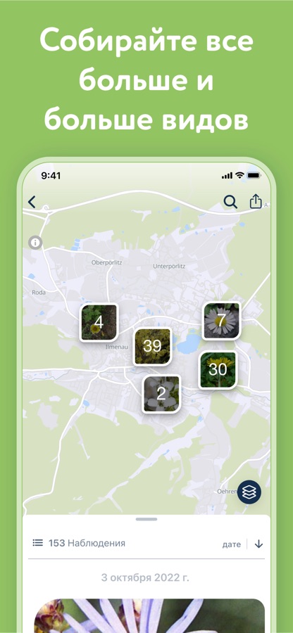 В приложении Flora Incognita вы можете легко просмотреть все собранные вами находки растений в списке наблюдений. Карты показывают, где вы нашли свои растения. Так вы сможете увидеть, как растут ваши знания о дикорастущих растениях.