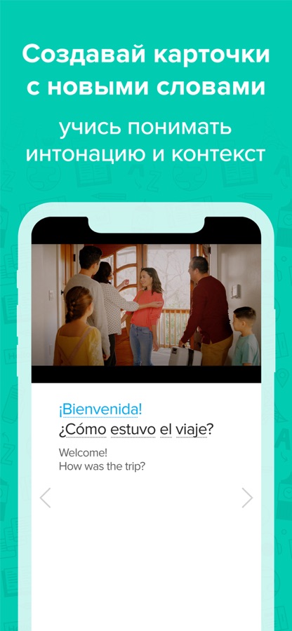 Во-вторых, FluentU превращает видео в интерактивные уроки и игры для изучения языка. Сцены из кинотрейлеров становятся вопросами, которые помогут вам изучить грамматику и разговорные фразы. Наши демонстрационные интерактивные карточки полностью персонализированы, чтобы обучать вас, используя ваши сильные стороны.