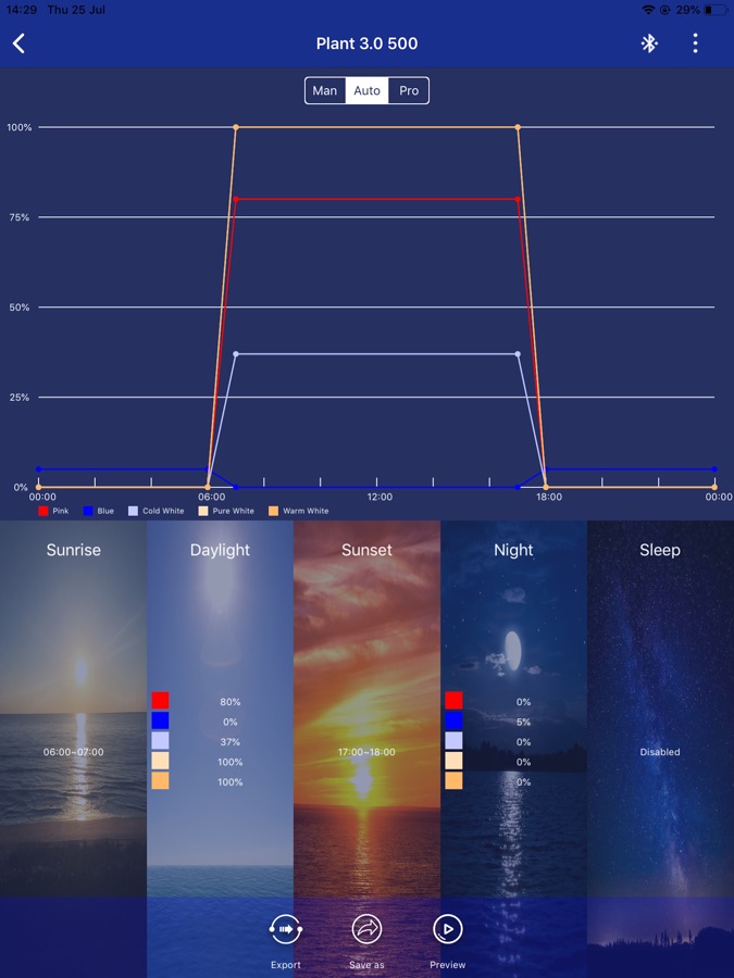 — Manual / Auto / Pro mode