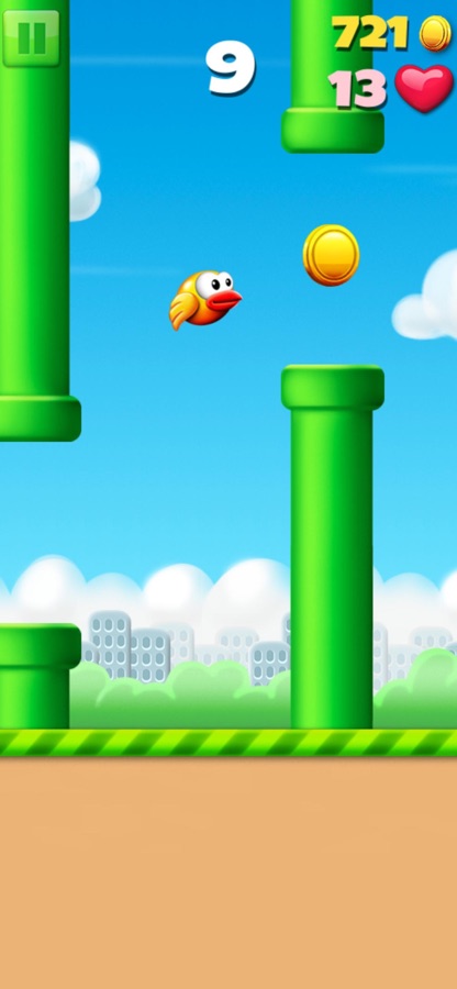 Птичка летает через трубы. Управляете ей, смело уворачиваясь от препятствий!
