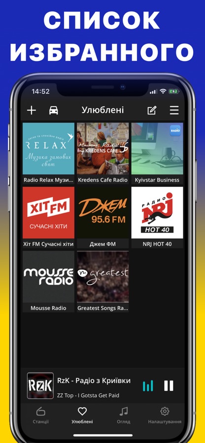 — личный список любимых радиостанций с возможностями добавления, удаления и изменения их порядка