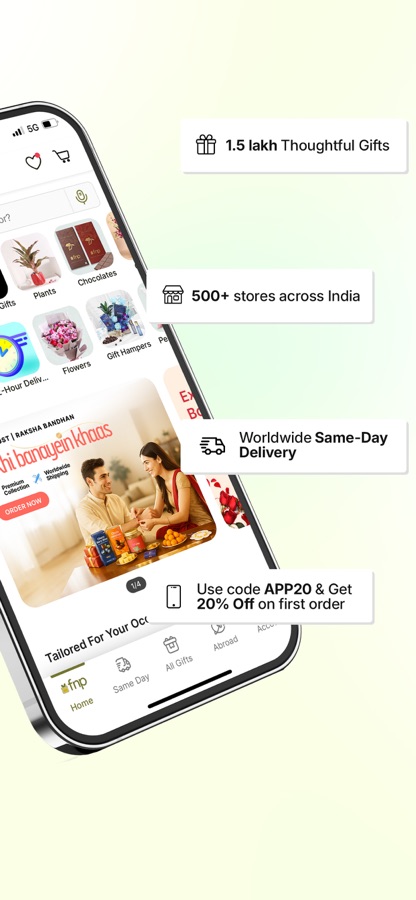 FNP (Ferns N Petals) is your one-stop app for online cake delivery, gifts for him & her, anniversary & valentine gifts, flowers, and more! Whether you need to order cakes online, find birthday gifts for your husband or wife, or surprise someone with photo cakes, FNP ensures seamless cake delivery and gifting across 350+ cities within India and 120+ countries.