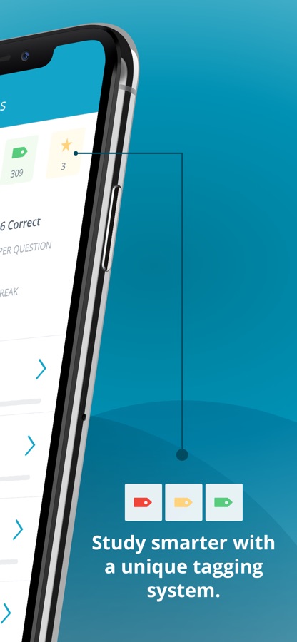 • Detailed results tracking for practice questions, with the ability to flag your weak areas for further review