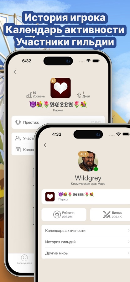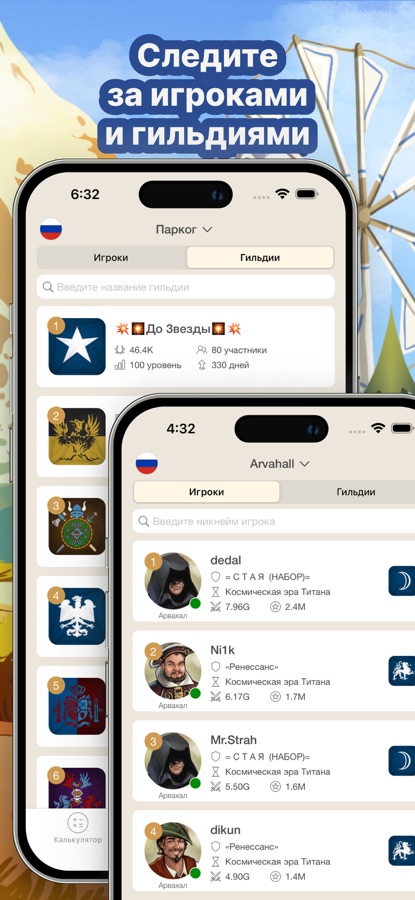 — Посмотрите календарь активности игроков, историю гильдий, участников гильдий;