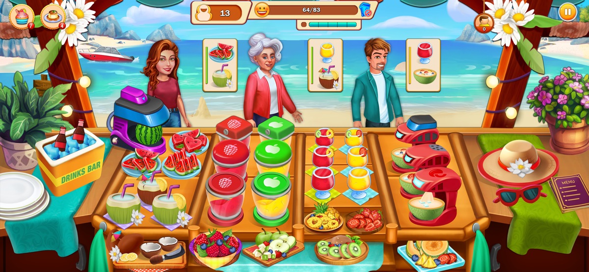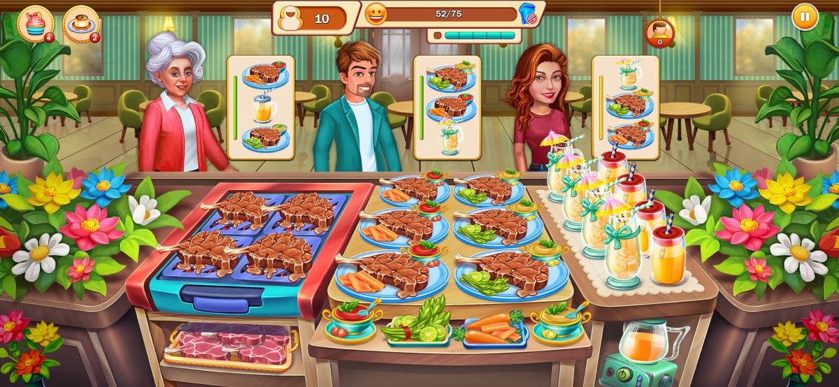 Manage your café restaurant and serve food to the clients. Make pizza, burgers and more delicious food on order. Tap and cook!