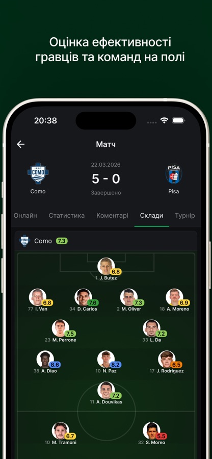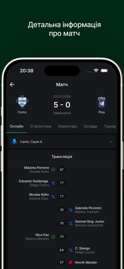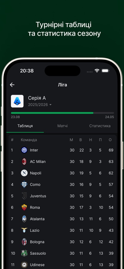— Статистика за вашими улюбленими командами та чемпіонатами.