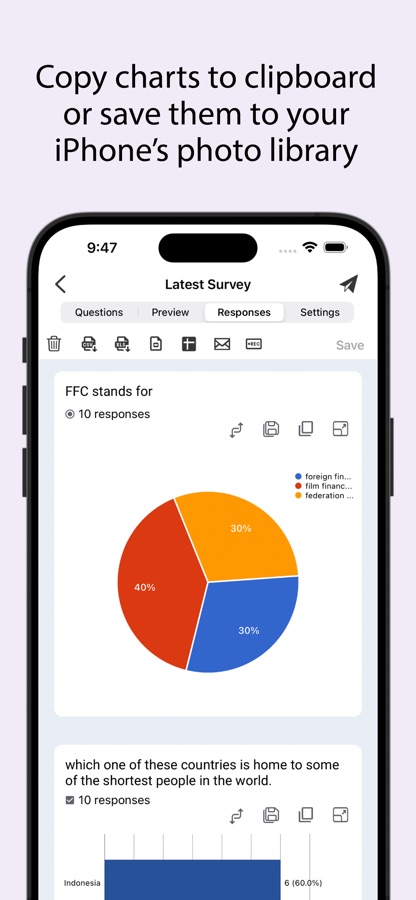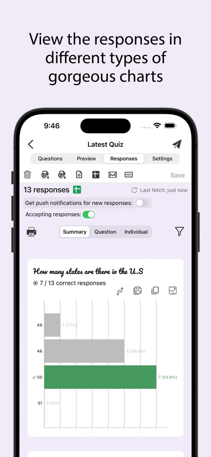 • View forms in three modes i.e. Summary, Questions and Individual responses mode on your iOS device.