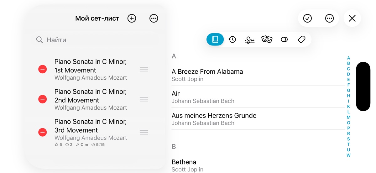 • Open scores and setlists in multiple windows or tabs to multitask with ease