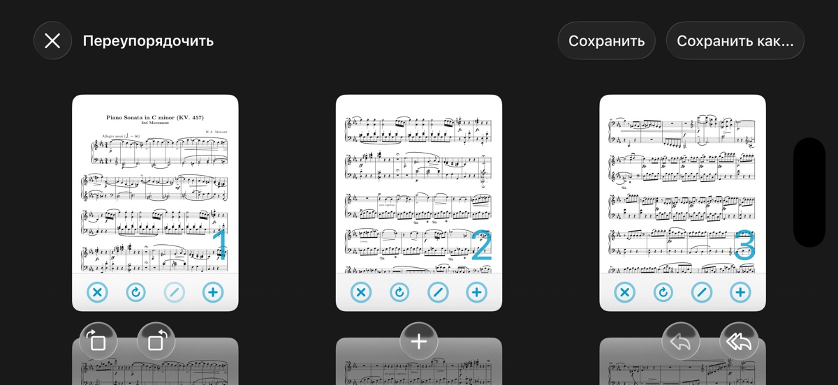 • Rearrange and duplicate pages of a score to play without jumping back and forth