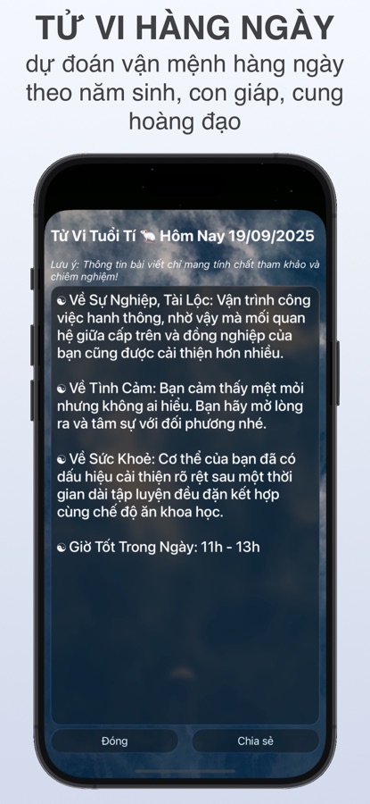 Nhận tử vi hàng ngày được cá nhân hóa dựa trên năm sinh của bạn.