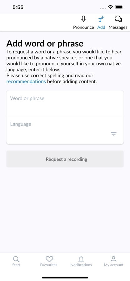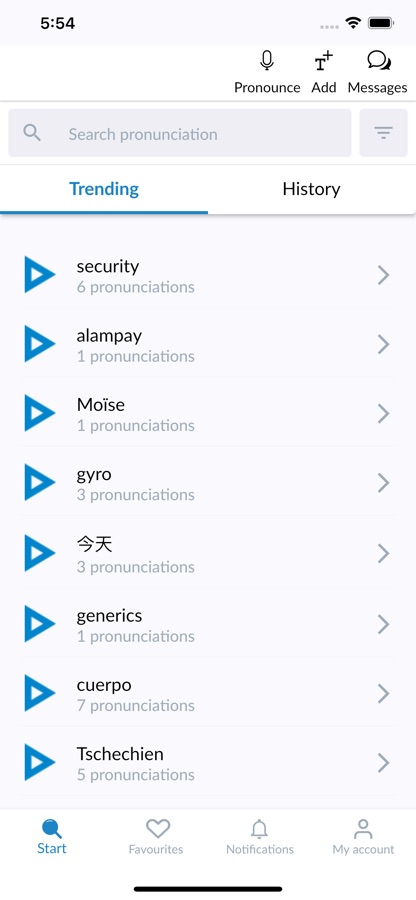 Improve your pronunciation with Forvo! Forvo Pronunciation App lets you listen, request and record pronunciations in more than 450 languages.