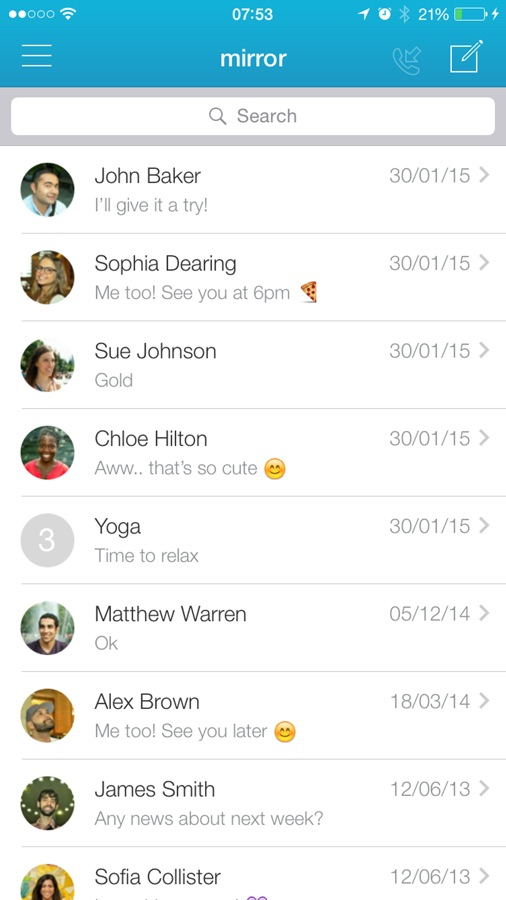 mysms mirror is a handy SMS extension for everyone who uses two or more smartphones. The app displays your texts from one phone to your other phone so that you are always up to date. No missed texts, no lost messages, no worries which phone to take. It will feel like you have your second phone with you, even if you leave it at home/at the office.