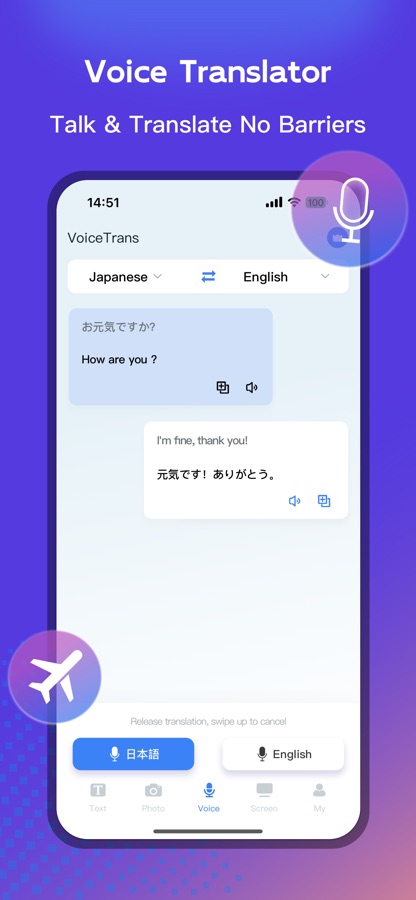 • Голосовой перевод в реальном времени: Просто скажите — и приложение тут же переведет голос или отобразит текст. Перевод можно воспроизвести голосом — идеально для общения, навигации или переговоров.