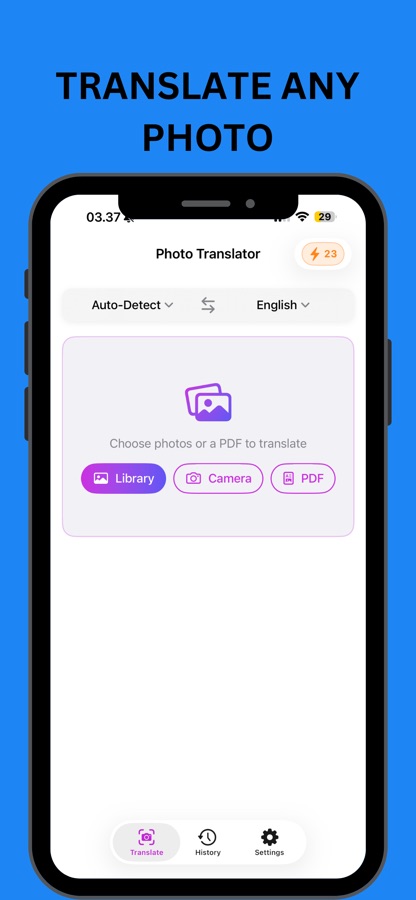 Будь то чтение иностранного меню, перевод уличного знака или локализация отсканированного документа, Photo Translator — ваш карманный переводчик.