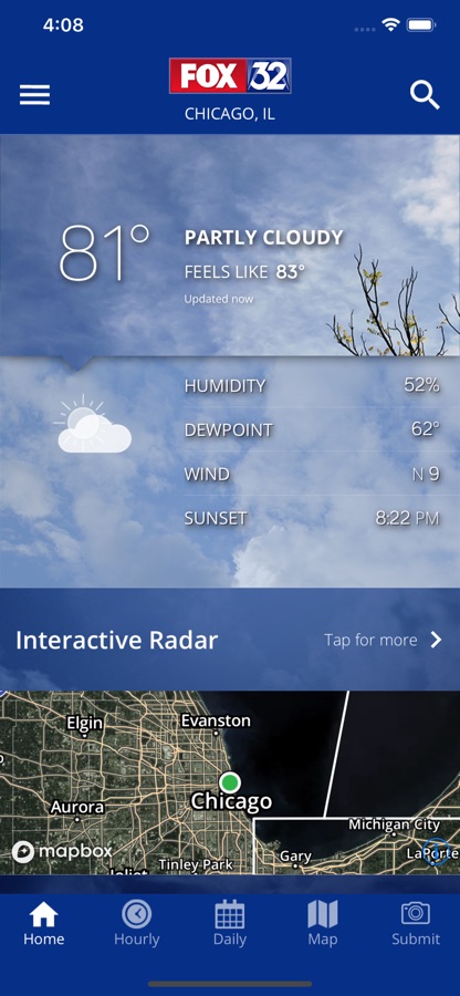 ° The FOX 32 Chicago Weather app includes current conditions updated multiple times per hour