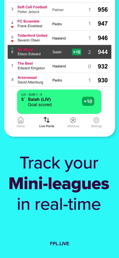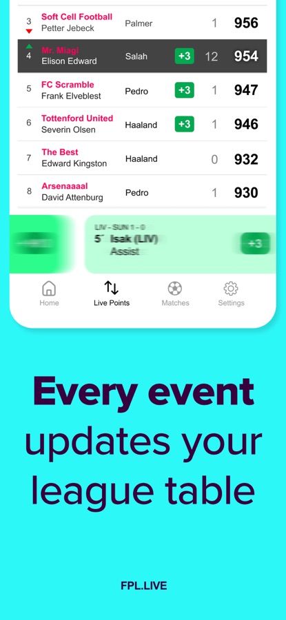 • Live FPL points updated during matches