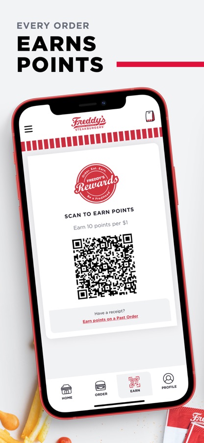 • Join Freddy’s Rewards and earn 10 points for every dollar you spend. Collect points and cash them in for free Freddy’s. Track your point total, view the rewards you have available to redeem, and see how many more points you need for bigger rewards.