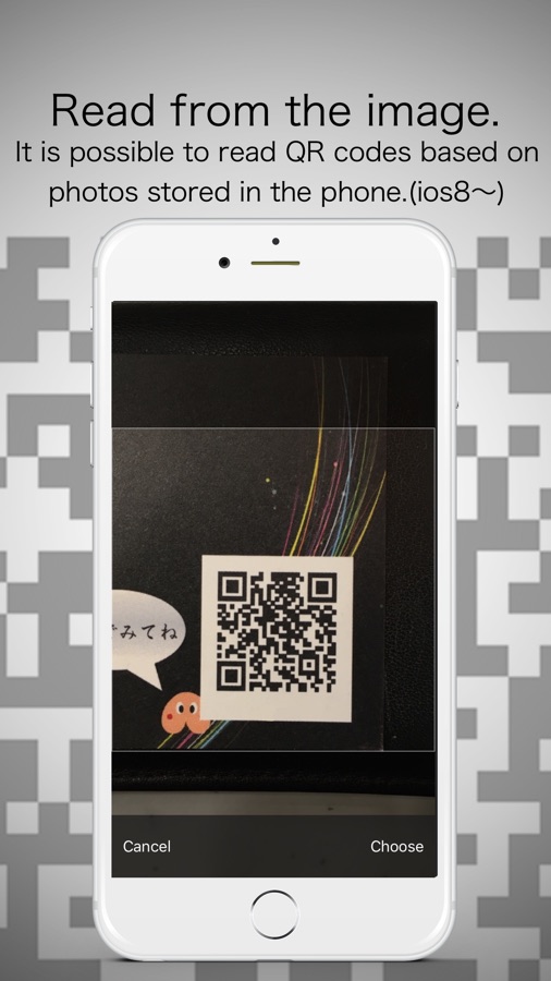 You can immediately start reading after the application launch. Just reflect a QR code that you want to read on the screen, reading is complete.