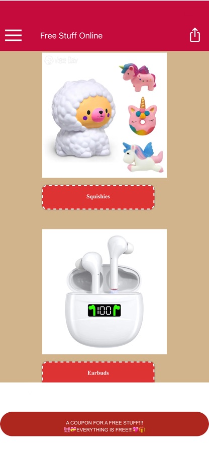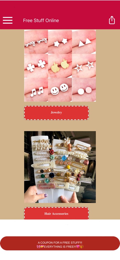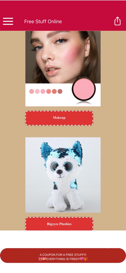 Get free stuff every day with Free Stuff Online! This online shop gives products for free by using coupons. You can find the best free stuff online every day, including free makeup, free food, health products, baby samples, free stuff with coupon, gifts, and more. Download Free Stuff Online now and start getting your daily freebies today! Don’t miss out on our discounts, promotions, and free samples!