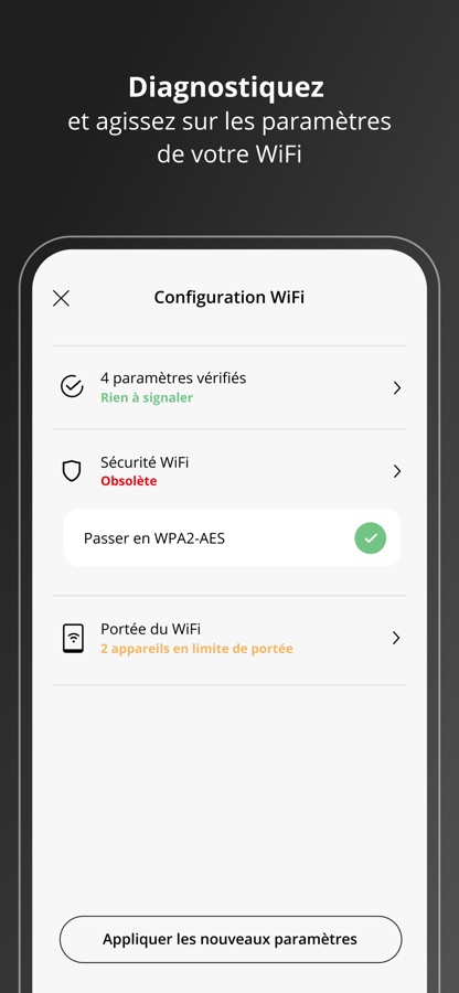 Lancez un diagnostic de votre configuration WiFi et corrigez-la en 1 clic si besoin.