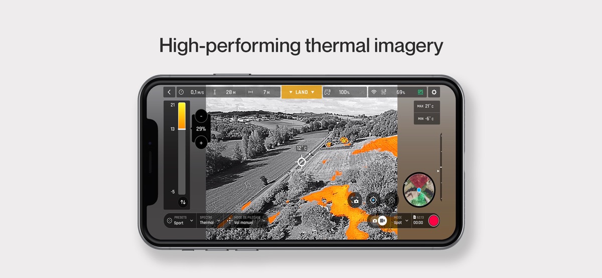 FreeFlight 6 offers a smoother and more intuitive piloting experience for ANAFI users everywhere thanks to a modernized interface. The application boasts ease of use; you can now quickly access exciting features directly from the home screen. The flying interface is adaptable to all users; beginners can have fun with dronies and automatic flight modes, while professional photographers can choose between several advanced and personalized camera settings.