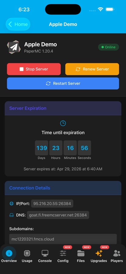 — Renew Your Server: Easily renew your server to keep it up and running without any interruptions.