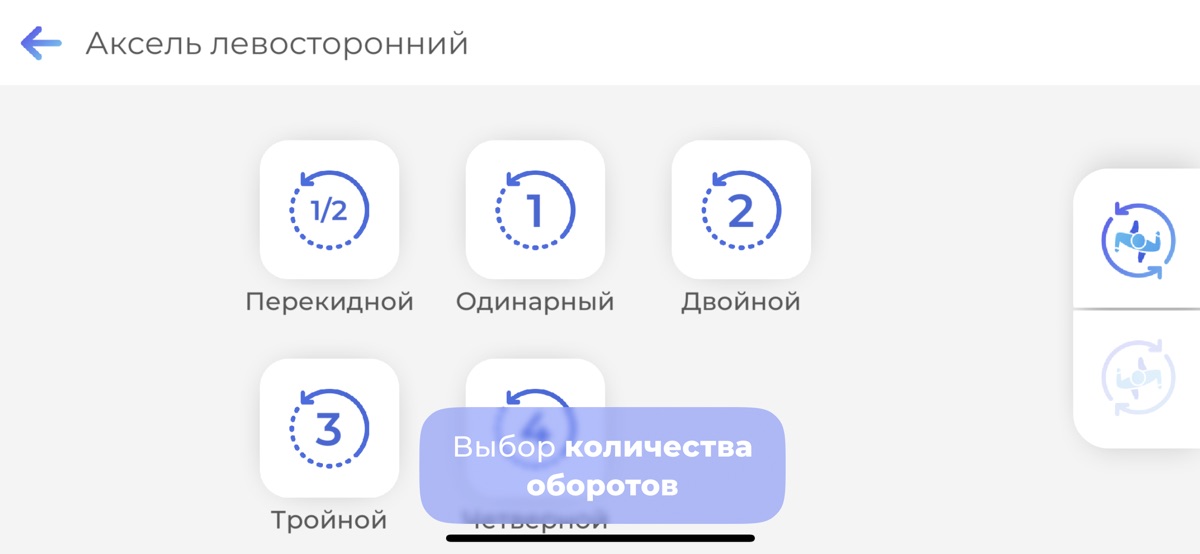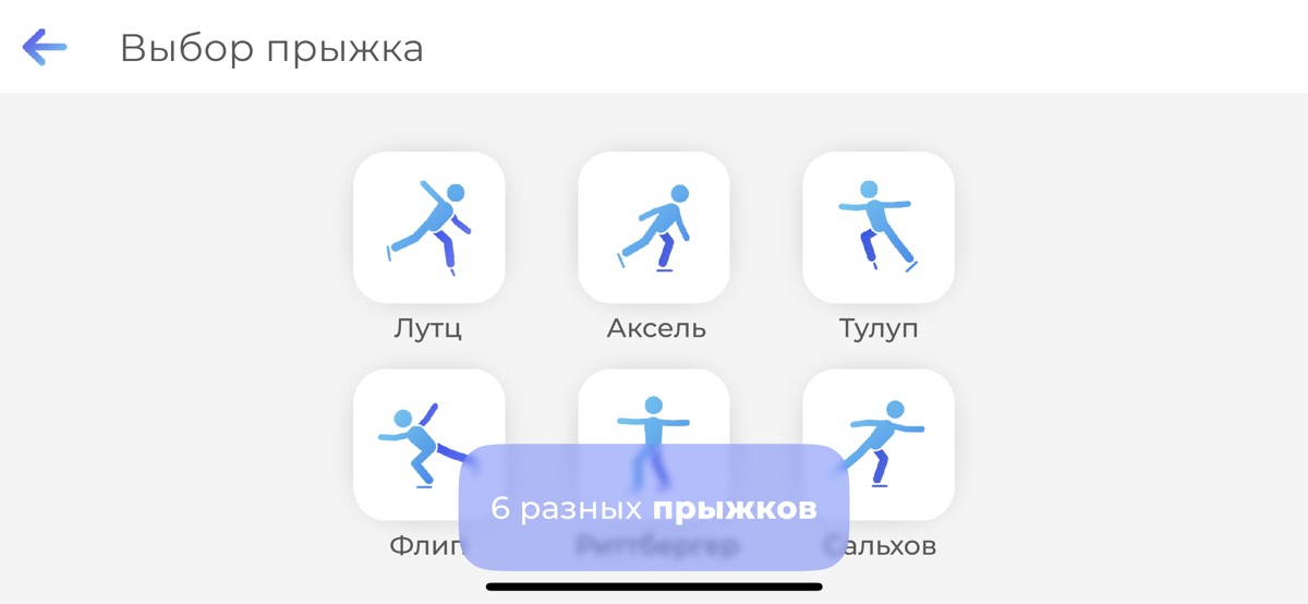 Сальхов, Риттбергер, Флип, Лутц и Аксель – эти прыжки вы можете использовать, прокладывая свой путь на катке. Анимированное обучающее пособие, состоит из 6 различных прыжков, одобренных ИСУ. Выбирайте из двух групп: реберные или зубцовые прыжки и включайте их в свою индивидуальную программу.