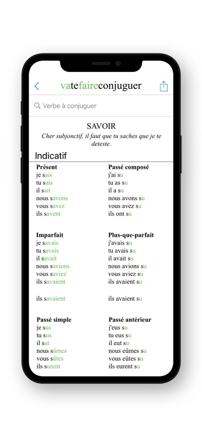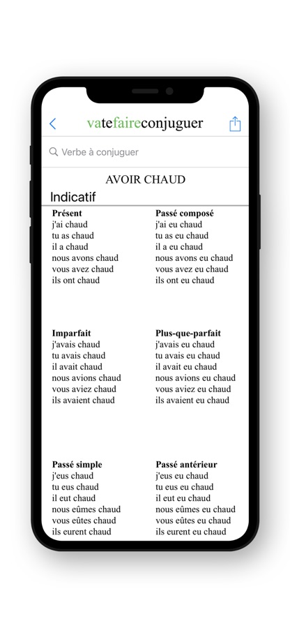 Vatefaireconjuguer, a free verb conjugation tool. Conjugate French verbs with ease using this handy app.