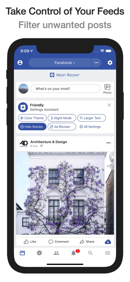 Enjoy your social media experience again with Friendly! Some of our other features include: