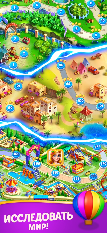 ● Сотни захватывающих уровней: играть в сотни сложных и веселых три в ряд уровней!