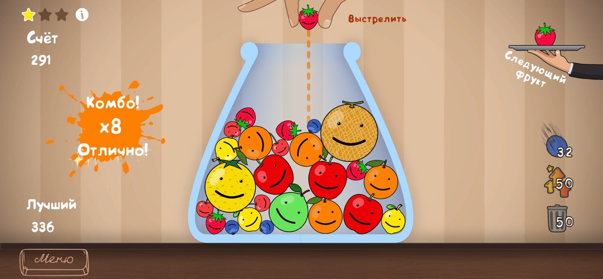 3. Используйте скиллы – выстрел фруктом, удаление фрукта или увеличение его до следующего.