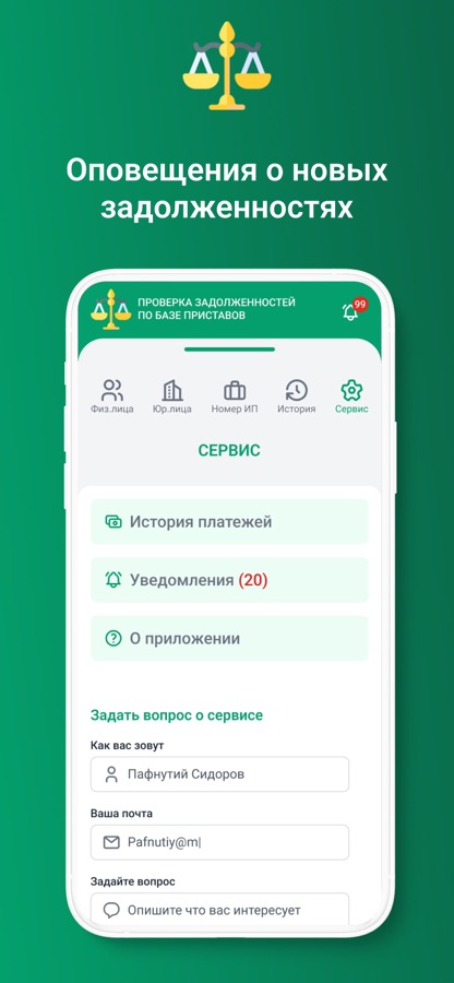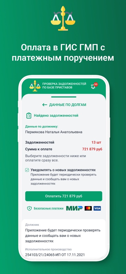 Скачивайте приложение и вы получаете самую актуальную информацию по долгам!