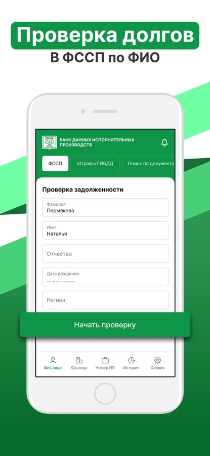 Приложение для поиска задолженностей у судебных приставов по фамилии в официальной базе ФССП.
