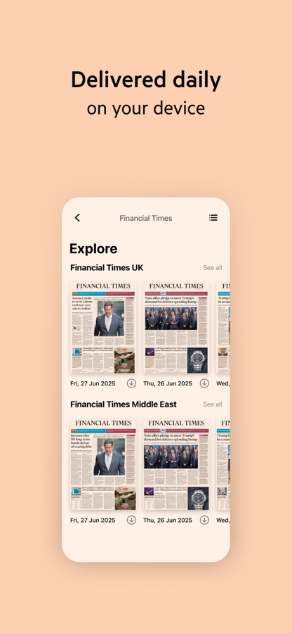 Your daily Financial Times newspaper, delivered to your device as it goes to print. Now with search to quickly find and save articles across editions.