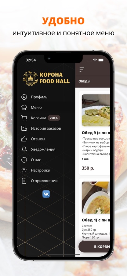 Приложение Корона — это удобный способ заказа еды домой или в офис!
