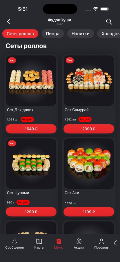 Приложение Фудзи Суши — это удобный и быстрый сервис заказа вкусной еды!