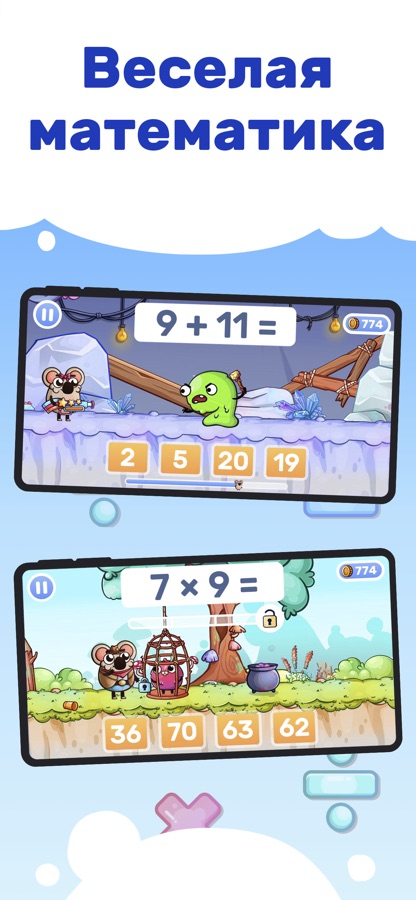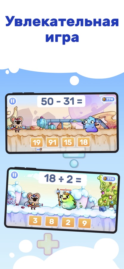 Математика может быть веселой! Веселая математика — это смешная и интересная игра, которая помогает отработать навыки решения примеров (сложение, вычитание, умножение, деление) для учеников 1, 2, 3 и 4 классов.