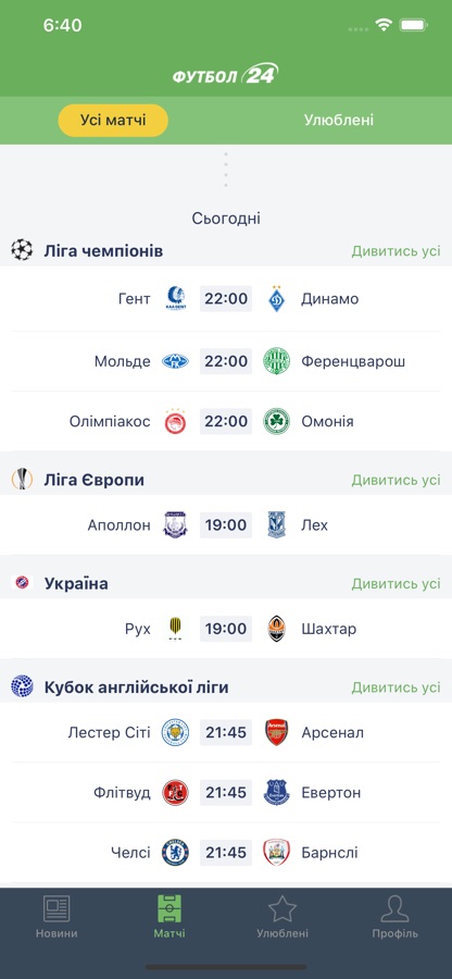 Футбол 24 — це український футбольний додаток з новинами, матчами та прогнозами.