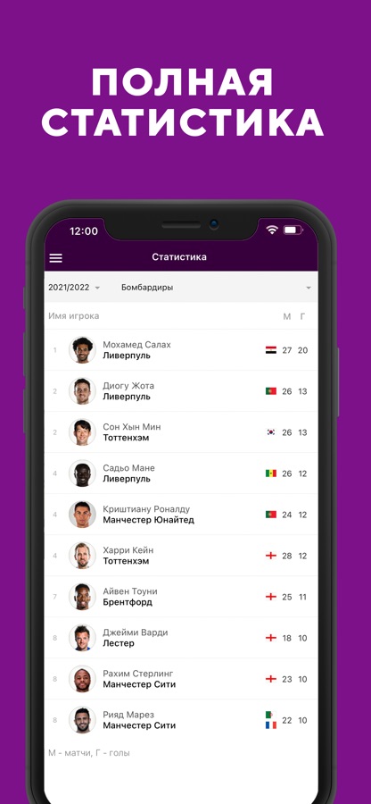 • Полная статистика всех матчей чемпионата в режиме реального времени, а также статистика игроков;