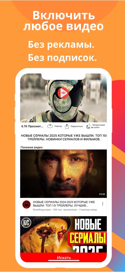 Наше приложение подключается к YouTube в реальном времени и позволяет воспроизводить любые видео с полной свободой.