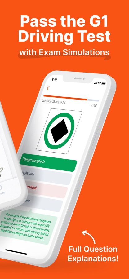 Our app content is based entirely on the MTO Driver’s Handbook, making it your one-stop solution for G1 driver’s test prep. Tackle questions identical to those on the G1 test and receive instant explanations for each response.
