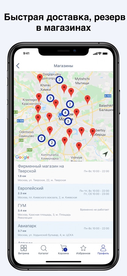 – Узнавать о наличии товара в магазинах;