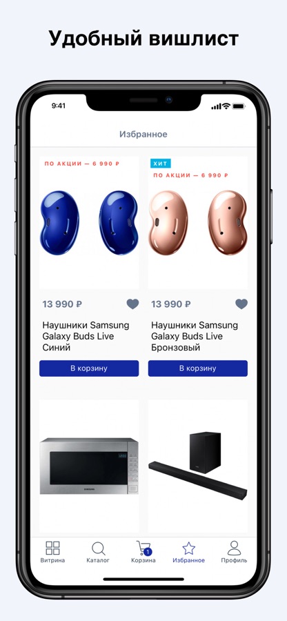 – Откладывать товары Samsung в Избранное, чтобы позже не искать их заново, отслеживать акции, которые проводит магазин, и специальные предложения на понравившиеся устройства;