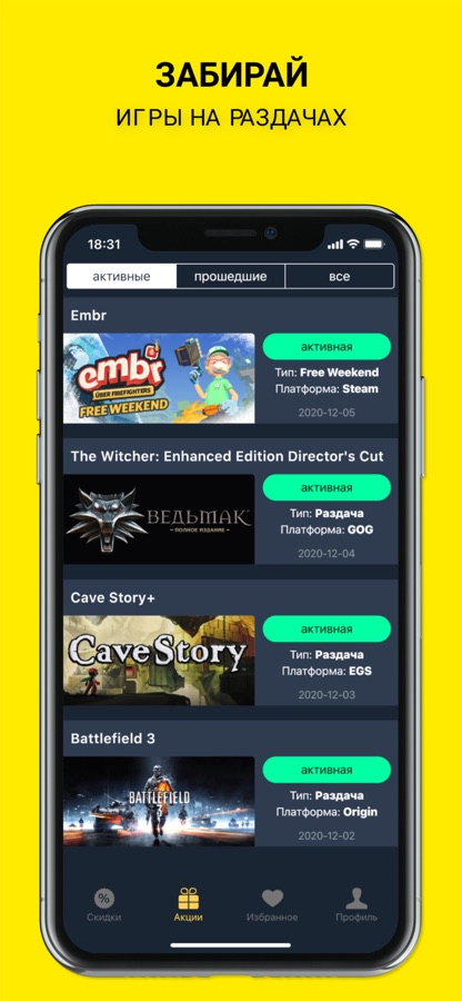 Раздел «Акции» позволяет узнать, где достать ключи бесплатно. Теперь вы больше никогда не пропустите бесплатные игры!