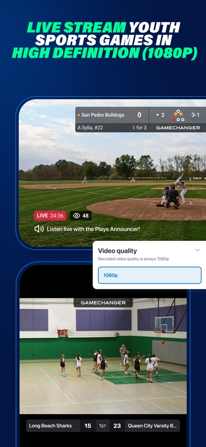 Stream and score your team’s games and keep fans connected to the action with GameChanger, the #1 youth sports app. All you need is a mobile device. Plus, coaches can access premium features, including stats and archived video for FREE!