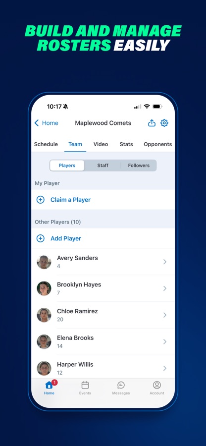 Keep roster and team contact info all in one place. Automatically populate your entire team roster in seconds by importing from MaxPreps, Sports Connect, or a past season on GameChanger.