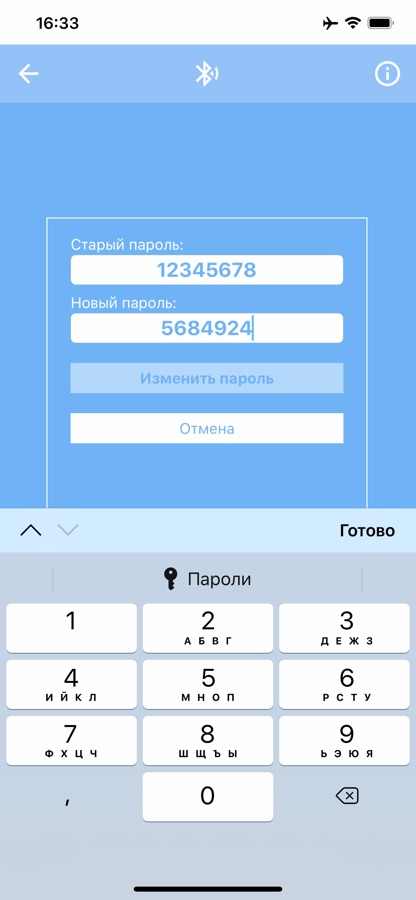 Стандартный пароль для этих модулей — «12345678». Для большей безопасности вы можете изменить пароль прямо в приложении. Пароль должен состоять ровно из восьми цифр.