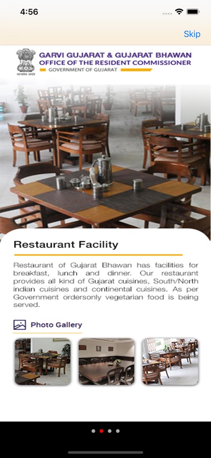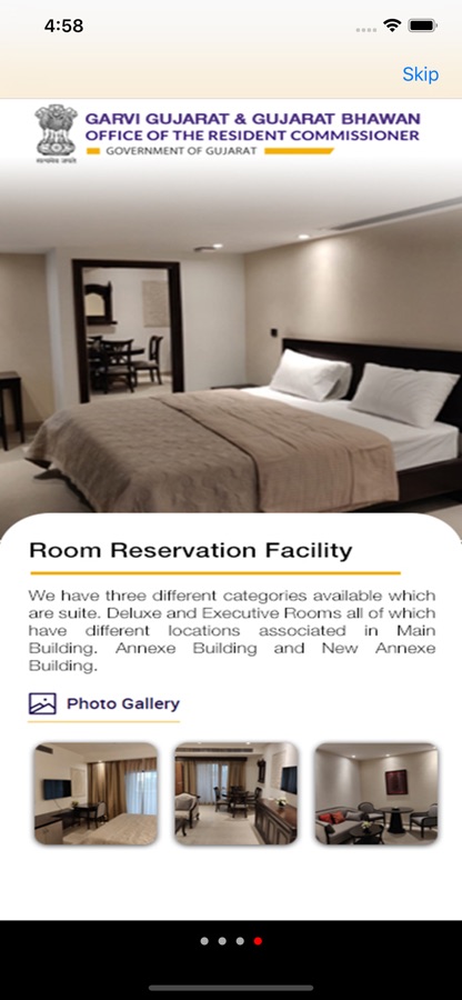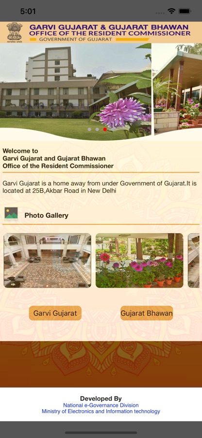 The application provides online request for room booking to officials of the Government of Gujarat. Both Garvi Gujarat and Gujarat Bhawan serve as a home away from home to valued dignitaries such as His Excellency the Governor, Hon’ble Chief Minister, the Chief Justice and Judges of the Gujarat High Court, MPs, MLAs, elected public representatives, the Chief Secretary, and other senior government officers, while they visit New Delhi.