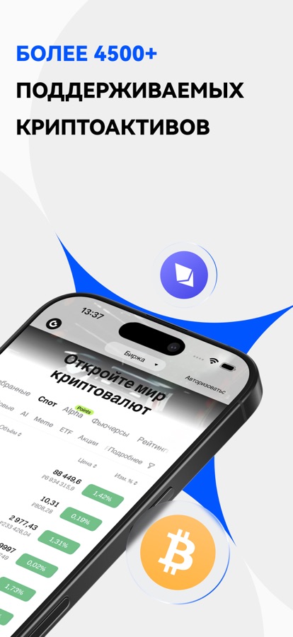 Поддержка цифровых активов, токенов с плечом, BRC20, ИИ, мемов, RWA, DePin, стейкинга ETH2.0, ETF, ETF с плечом 5x , Layer 2, токенов платформы, DeFi и широкого спектра экосистемных активов.