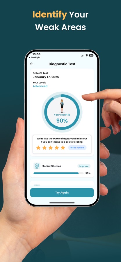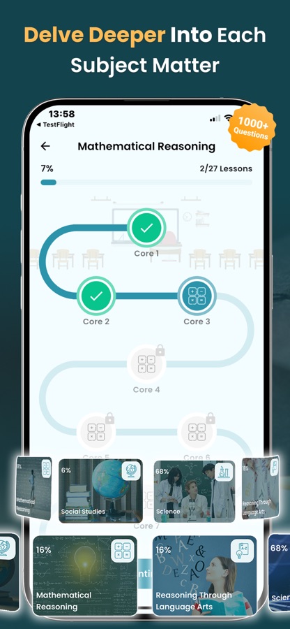 — Custom & Diagnostic Tests: Start with a diagnostic test to identify your current level, then create custom tests to target specific subjects or skills that need improvement.